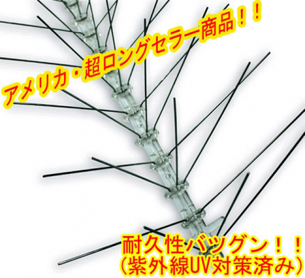 (2)夏から秋にかけての夜間のハウスコウモリ(家コウモリ)の糞・尿被害にものすごく困ってました。庇下や外壁が真っ黒になるくらいの糞害でした。そこで、「Newバード・スパイク」数台を100均のインシュロック(結束バンド)で屋根に下向きに設置したところ、【即日すぐに】効果てきめん!今朝はコウモリの糞が【ゼロ】!本当に良い商品です。(埼玉県・男性)