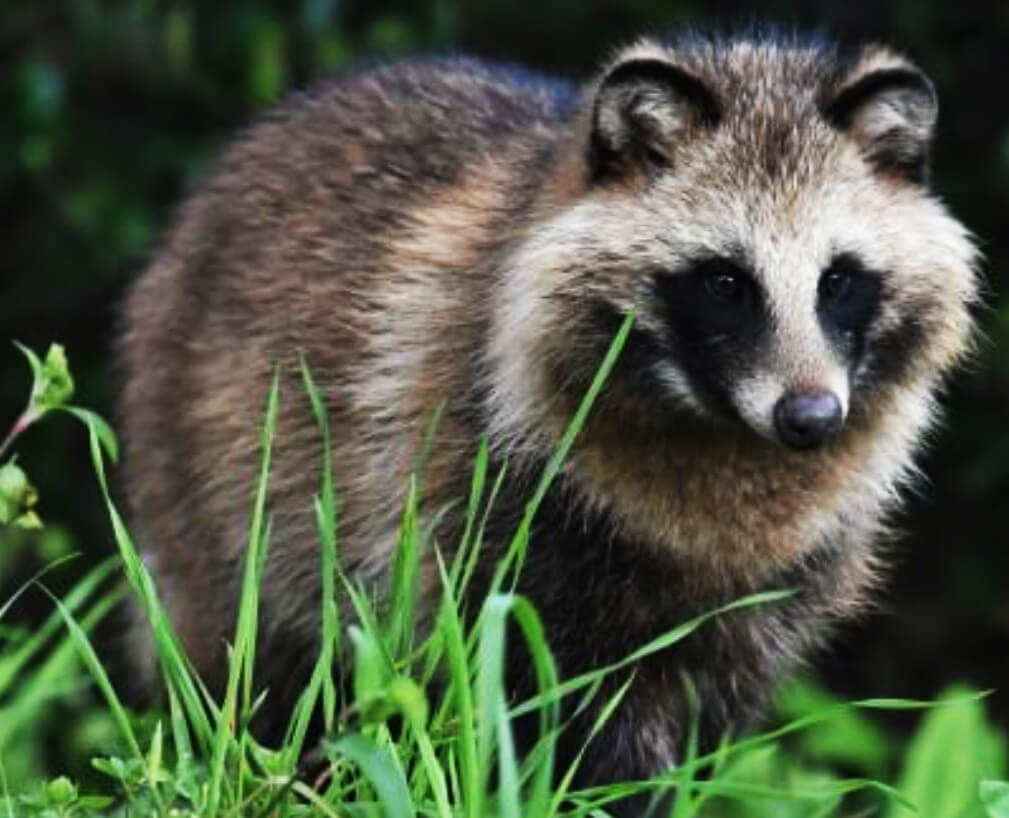 タヌキはイヌ科タヌキ属に分類される哺乳類である。地域によってはムジナと呼ばれている。体長は約45~70cm程で、体重は3~9kgほど。秋頃から冬に向けて脂肪を蓄えるため、季節によって体重が大きく変わる。体色は灰褐色~茶褐色で、四肢は黒く短く、目の周りや耳の縁が黒くなっている。一般的なタヌキのイメージと異なり、耳は丸みこそあるものの三角である。生息環境は森林であるが、山林の減少、森林開発に伴い、都市部においても増加しており、道路の側溝などをねぐらにしていることがある。夜行性動物でかつ里山で生活していることが多いため、交通事故に遭うことが多い。食性は雑食性で、ネズミや昆虫などの小動物、果実など植物質のものを食べる。湿地の茂みの中も自由に行動でき、泥地の歩行や遊泳など水辺でも活動し、水中昆虫や魚介類など水生動物も補食する。